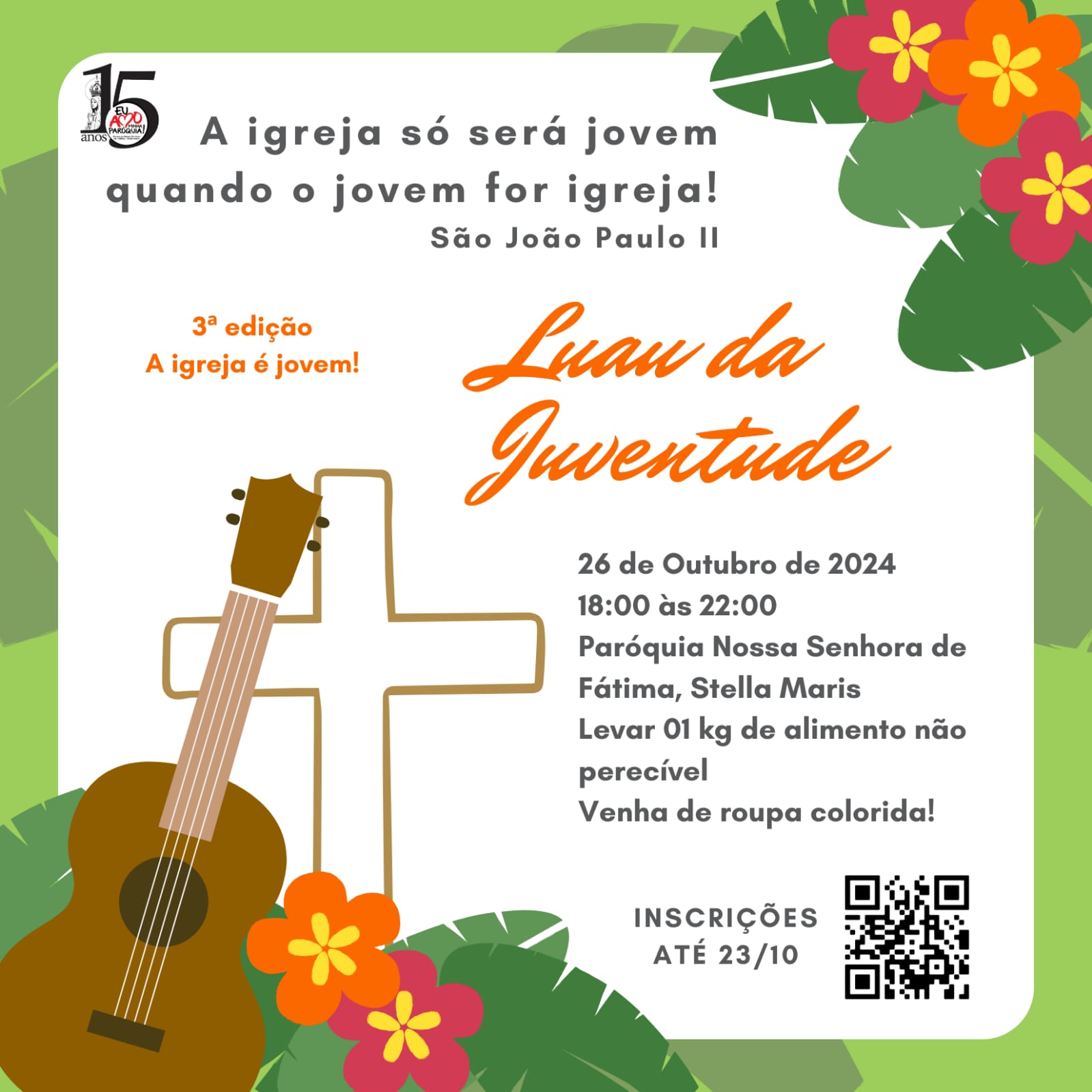 A 3ª Edição do Luau da Juventude já tem data marcada e você jovem da nossa paróquia não pode ficar de fora desse momento de evangelização, uma experiência profunda de fé e união, 26 de outubro às 18h.