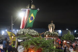 O grande dia de festa começou cedo com Oficio e seguiu por todo o dia com Missa, Exposição do Santíssimo, Carreata e a tão esperada procissão luminosa que permitiu a todos os presentes viverem o momento do encontro do Senhor do Bom com a sua mãe a Virgem de Fátima. Um momento único e sem igual como fez questão de nos falar a paroquiana Patrícia Santos