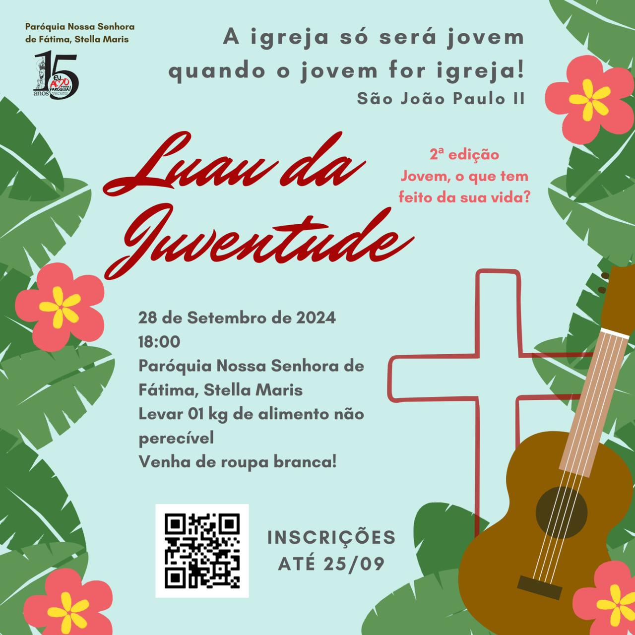 Com data marcada para o dia 28 de setembro, os jovens da Paróquia Nossa Senhora de Fátima, Stella Maris convida todos a participar do 2º Luau da Juventude, com início às 18h na paróquia.